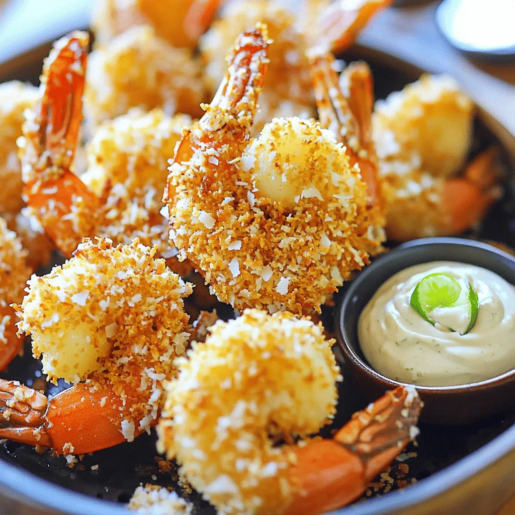 Um die Panade optimal zu nutzen, tauchen Sie die Garnelen zuerst in das Weizenmehl. Dies hilft der Ei-Mischung, besser zu haften. Nach dem Eintauchen in die Eier sollten Sie die Garnelen gut abtropfen lassen. Drücken Sie die Kokosnuss-Panade fest an, damit sie beim Frittieren nicht abfällt. Dieser Schritt ist entscheidend für eine schöne, knusprige Schicht!