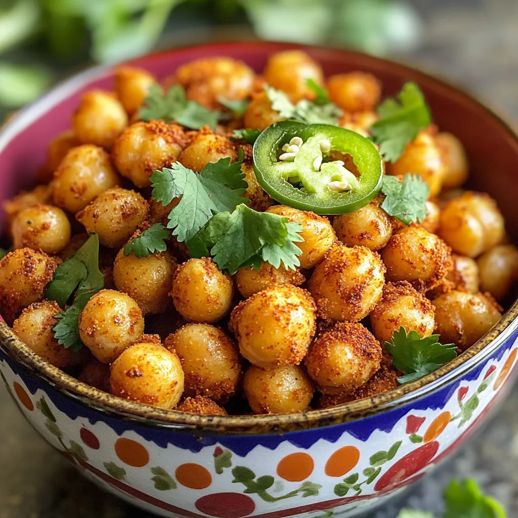 Die Präsentation ist wichtig, um die Kichererbsen zu zeigen. Serviere sie in einer bunten Schüssel. Du kannst sie mit geschnittenen Jalapeños, frischem Koriander oder Avocadoscheiben garnieren. So sehen sie nicht nur gut aus, sondern bieten auch mehr Geschmack. Genieße sie als Snack oder als knusprigen Belag für Salate.