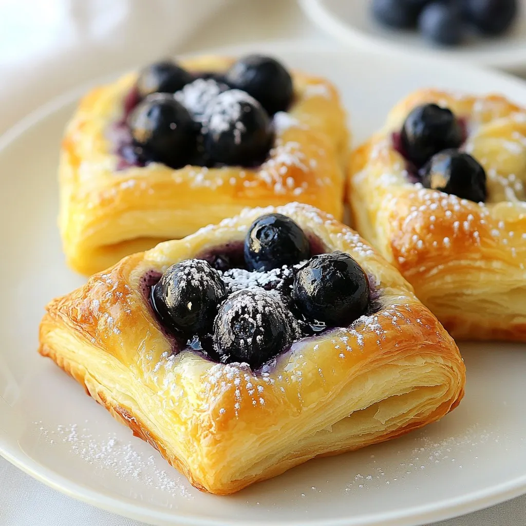 - Serviertipps: Bestäuben Sie die Danishes vor dem Servieren mit zusätzlichem Puderzucker und fügen Sie einige frische Blaubeeren als Garnitur hinzu, um das Aussehen und den Geschmack zu verbessern.