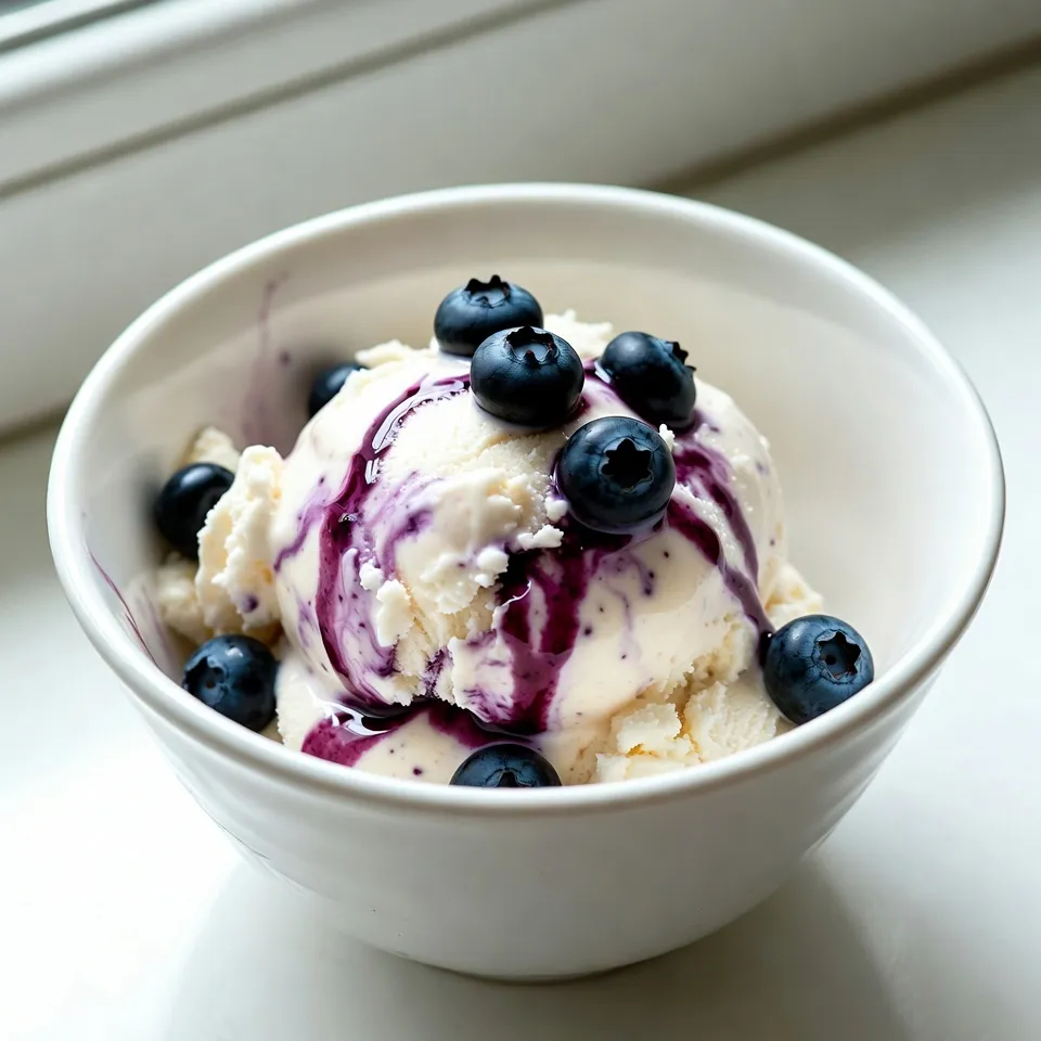 Eine köstliche und cremige Eiscreme mit frischen Blaubeeren und Käsegeschmack.