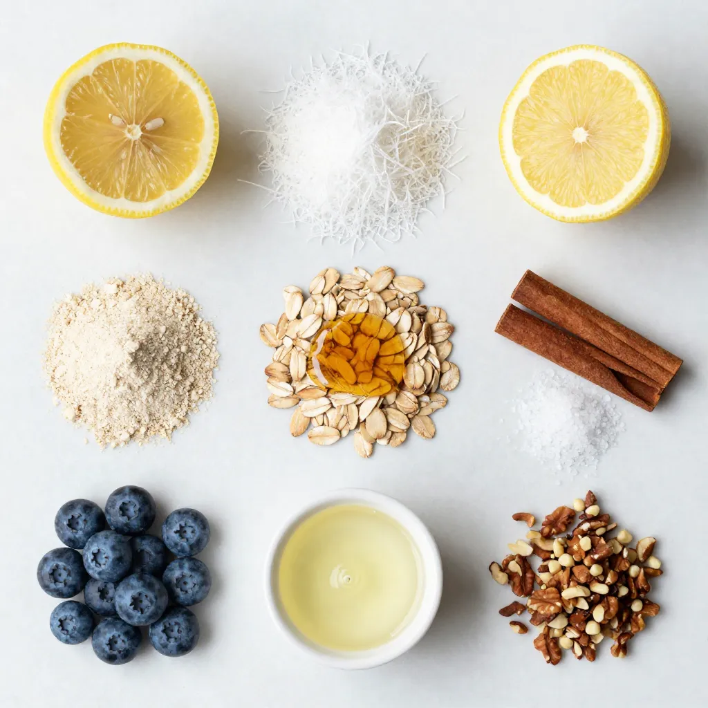 Hauptzutaten für den Blaubeer-Kokos-Crumble