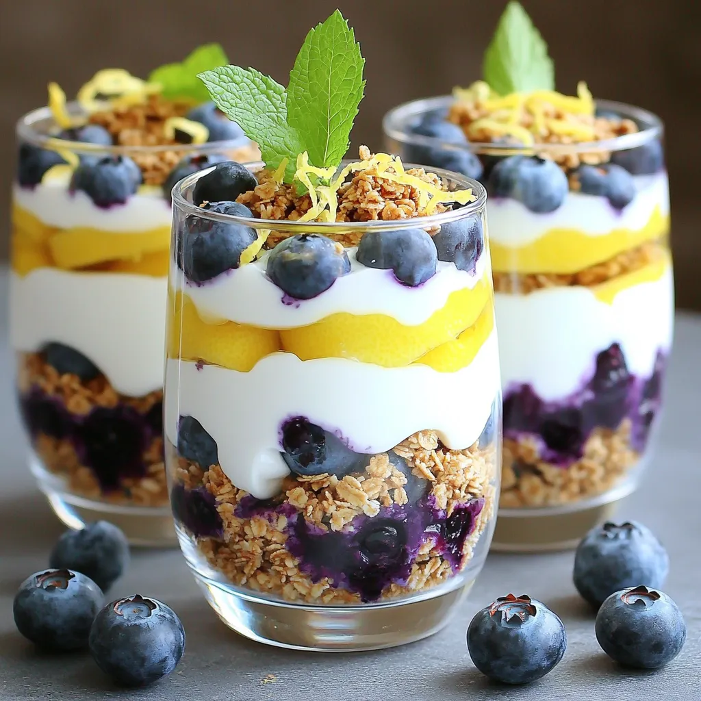Genießen Sie die erfrischenden Blaubeer-Zitronen-Joghurt-Parfaits, die perfekt für den Sommer sind! Diese einfachen Schichtdesserts bestehen aus cremigem griechischen Joghurt, frischen Blaubeeren und knackigem Granola. In nur 15 Minuten zubereitet und mit einer kühlen Pause von 30 Minuten genießen Sie einen gesunden Snack oder ein köstliches Dessert. Klicken Sie durch, um das vollständige Rezept zu entdecken und Ihre Gäste zu beeindrucken!