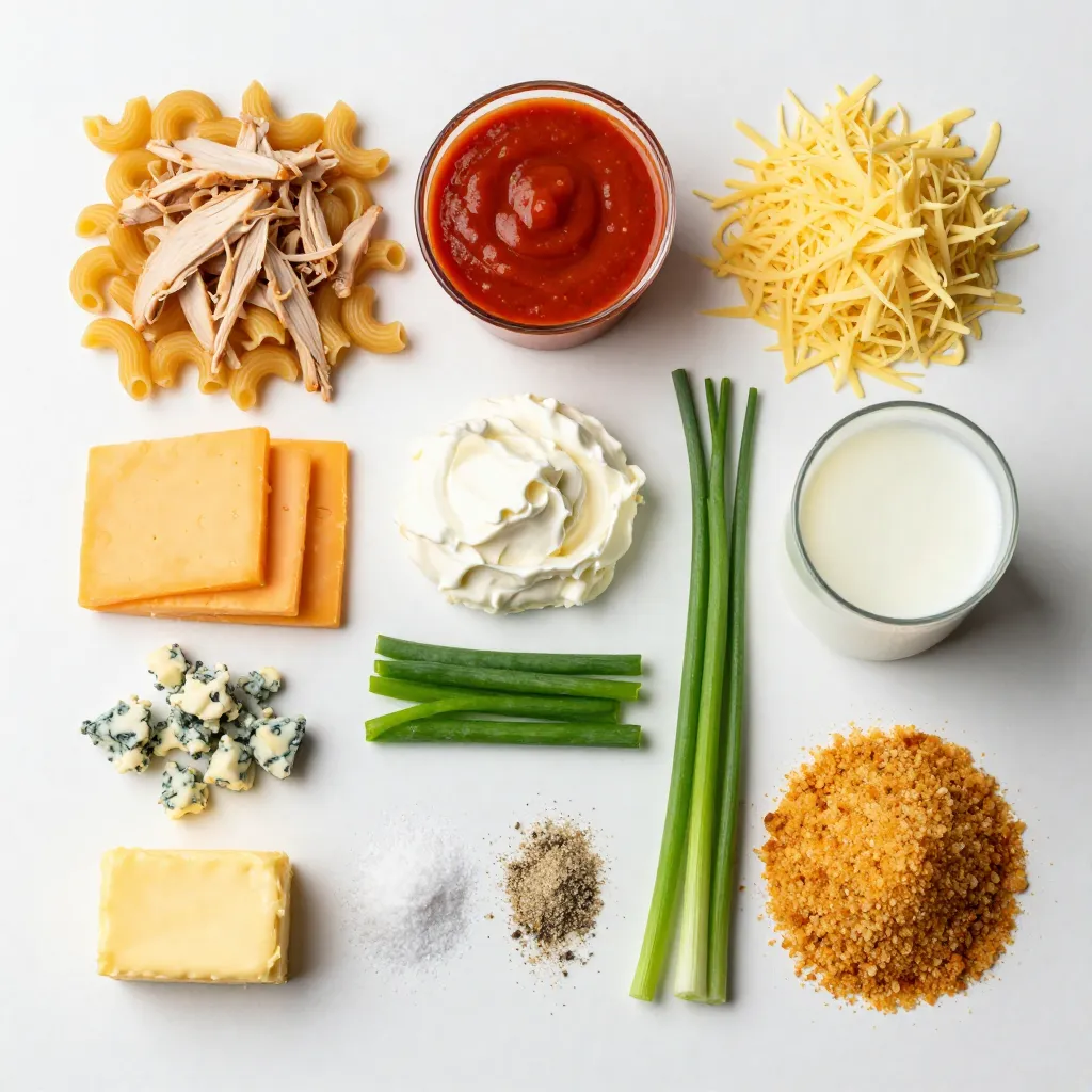 Hauptzutaten für Buffalo Chicken Mac and Cheese