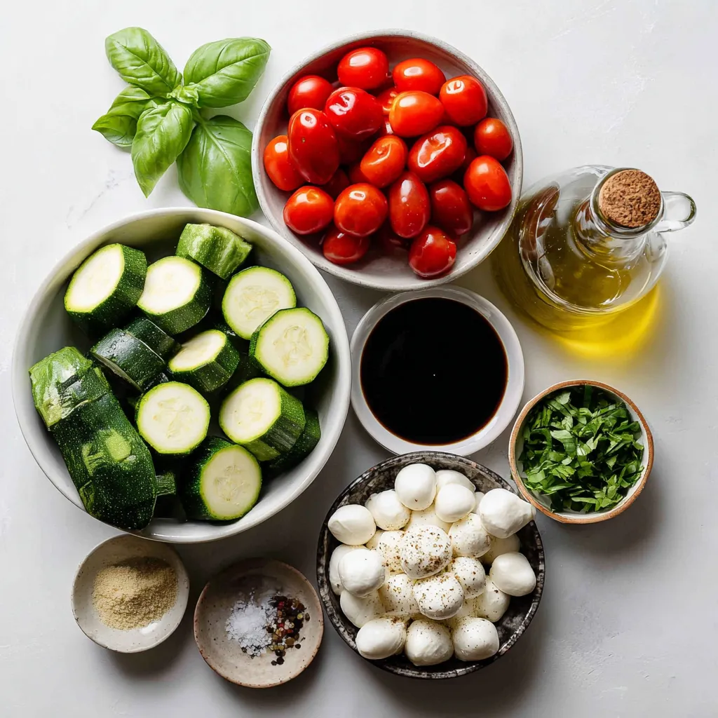 Diese Zutaten sind frisch und leicht zu finden. Zucchini sind die perfekte Basis. Sie sind zart und nehmen den Geschmack gut auf. Kirschtomaten bringen Süße. Mozzarella sorgt für Cremigkeit. Basilikum gibt einen frischen Kick.