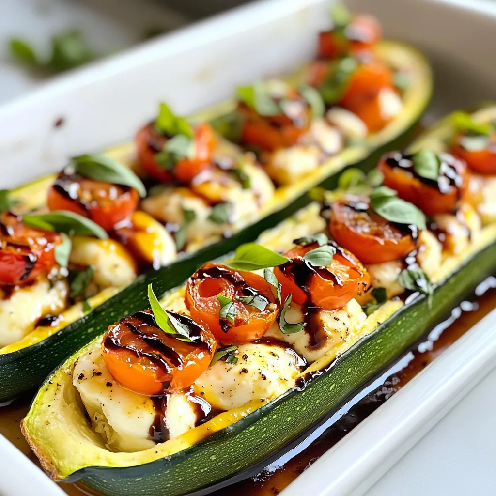Um die Zucchini-Boote vor dem Servieren aufzufrischen, heizen Sie den Ofen auf 180°C (350°F) vor. Legen Sie die gefrorenen oder gekühlten Zucchini-Boote auf ein Backblech. Backen Sie sie für etwa 15 Minuten, bis sie warm sind. Ein Spritzer frischer Balsamico-Glasur sorgt für zusätzlichen Geschmack. Servieren Sie sie mit frischen Basilikumblättern für einen schönen Look.