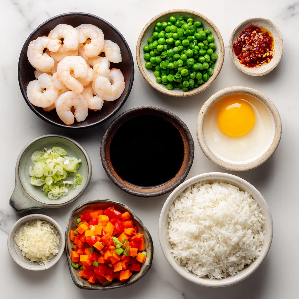 Hauptzutaten für Chili Garlic Shrimp Fried Rice