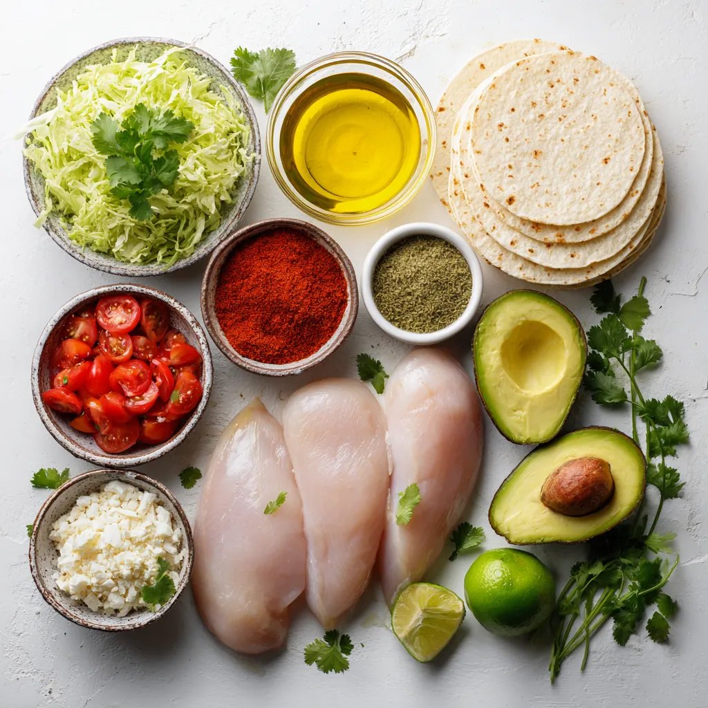 Die Hauptzutaten sind wichtig, um die Tacos lecker zu machen. Hähnchenbrust gibt es in vielen Supermärkten. Frische Tortillas sind am besten für den Geschmack. Achte darauf, dass die Zutaten frisch sind.