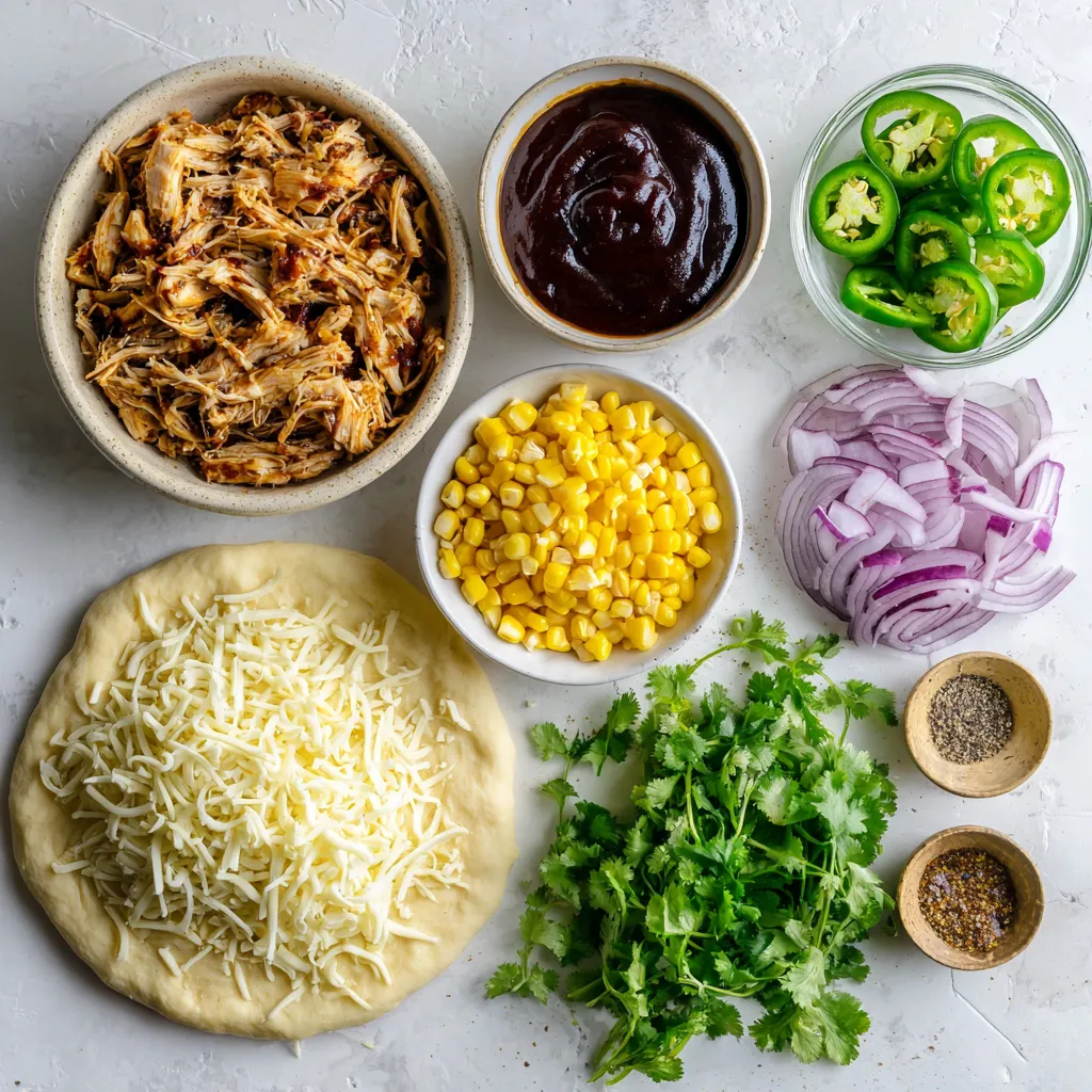 Hauptzutaten für Chipotle BBQ Hühnchen Pizza
