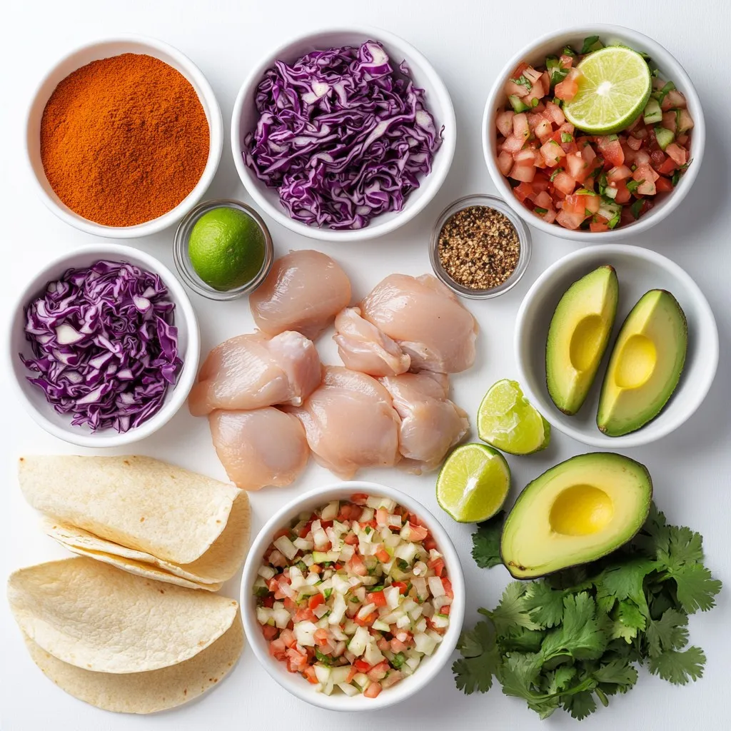 Hauptzutaten für Chipotle Limetten-Hähnchen-Tacos