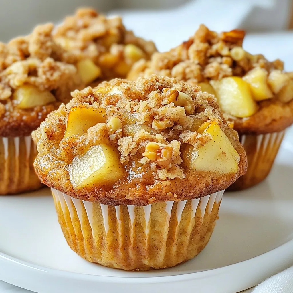 Leckere Muffins mit Zimt und Äpfeln, gekrönt mit einem knusprigen Streuseltopping.
