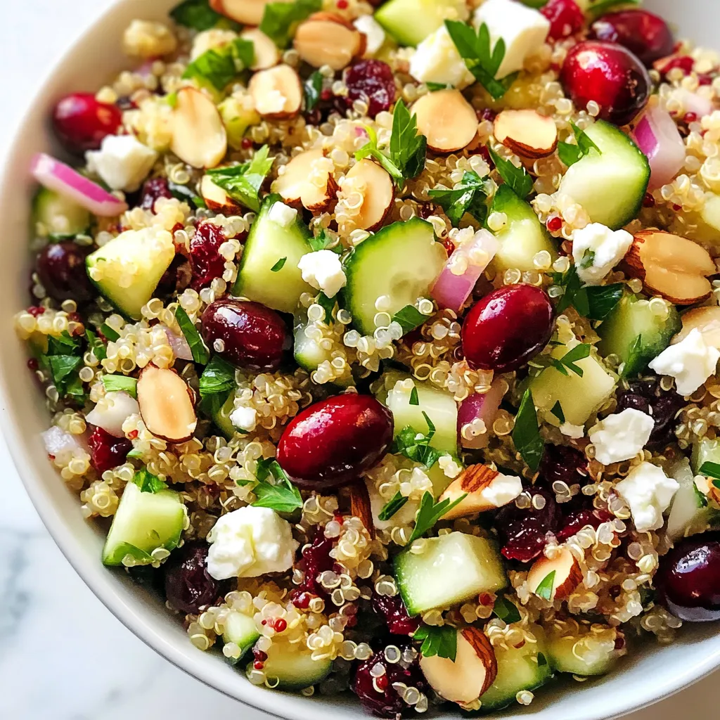 - Gesunde Zutaten: Diese Salat kombiniert nährstoffreiche Quinoa mit frischen Cranberries und Mandeln, was ihn zu einer gesunden Wahl macht.