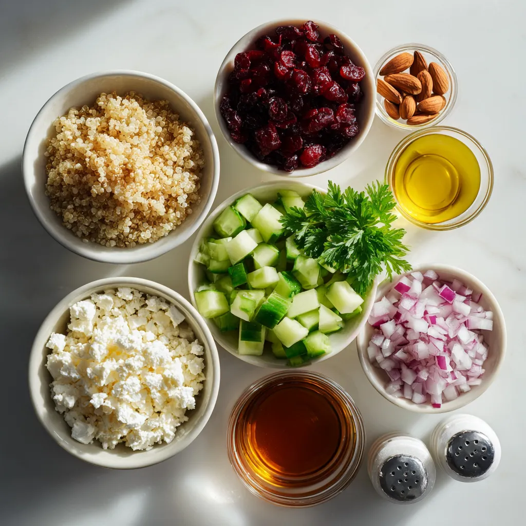In diesem Rezept für den Cranberry Almond Quinoa Salad sind die Zutaten einfach und frisch. Quinoa ist die Hauptzutat. Sie ist gesund und reich an Eiweiß. Wasser oder Gemüsebrühe geben Geschmack. Cranberries sorgen für eine süße und saure Note. Sie sind auch voller Vitamine.