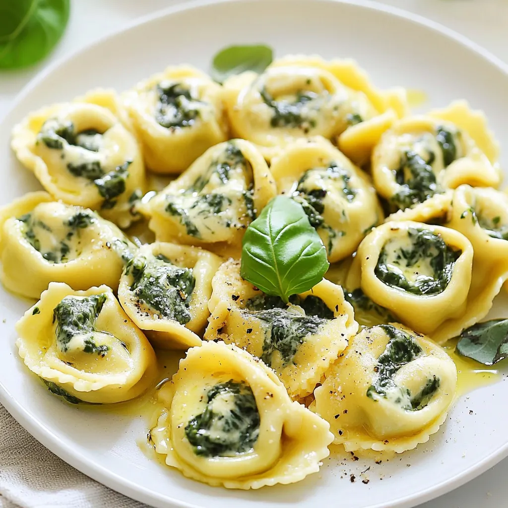 Eine köstliche Kombination aus Käse-Tortellini und einer cremigen Spinatfüllung.