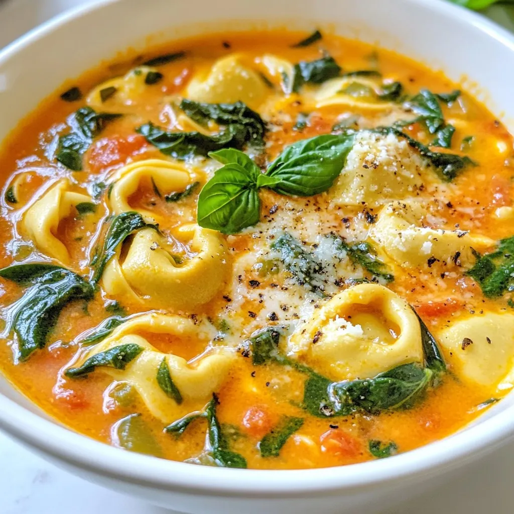 Cremige Tomaten-Spinat-Tortellini-Suppe
