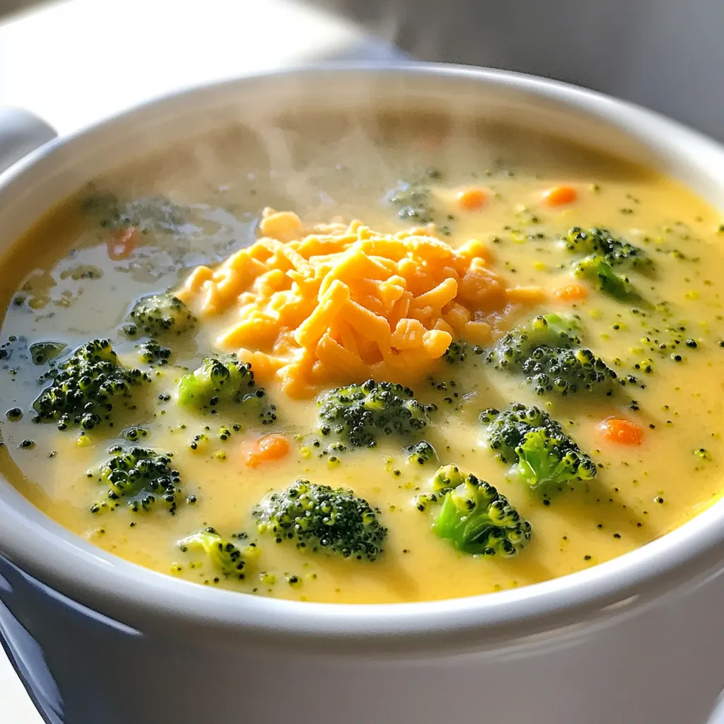 Die Hauptzutaten sind einfach zu finden. Brokkoli bringt frische Farbe und wichtige Nährstoffe. Karotten fügen eine süße Note hinzu. Zwiebeln geben der Suppe Geschmack. Gemeinsam bilden sie die Basis für unsere cremige Brokkoli Cheddar Suppe.