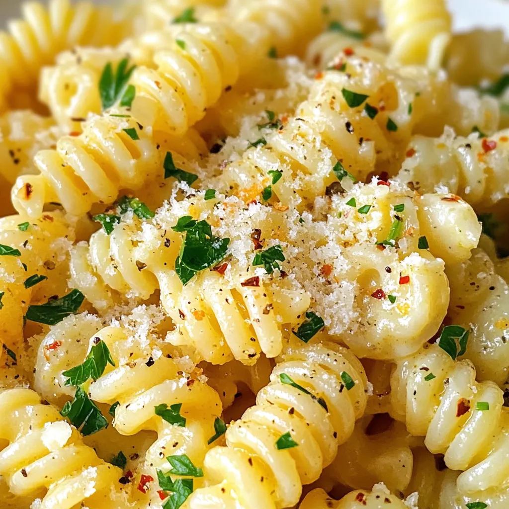 • Serviere die Pasta sofort und garniere sie mit frischer Petersilie sowie einer zusätzlichen Prise Parmesan.