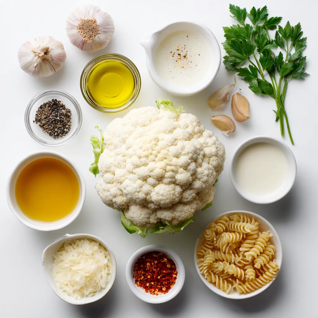 Um eine leckere cremige Blumenkohl-Pasta zuzubereiten, brauchst du:
