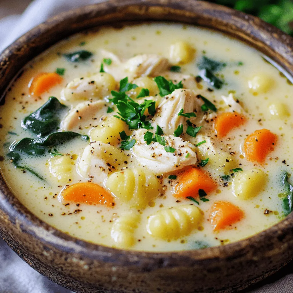 Entdecken Sie das perfekte Wohlfühlgericht mit dieser cremigen Hühner-Gnocchi-Suppe! Diese herzhafte Suppe kombiniert zarte Hähnchenbrust, frisches Gemüse und weiche Kartoffelgnocchi in einer köstlichen Brühe. In nur 30 Minuten zubereitet, ist sie ideal für kalte Tage. Lassen Sie sich inspirieren und bringen Sie mit diesem Rezept Wärme in Ihre Küche. Klicken Sie hier, um die vollständige Anleitung zu erhalten und noch mehr köstliche Rezepte zu entdecken!