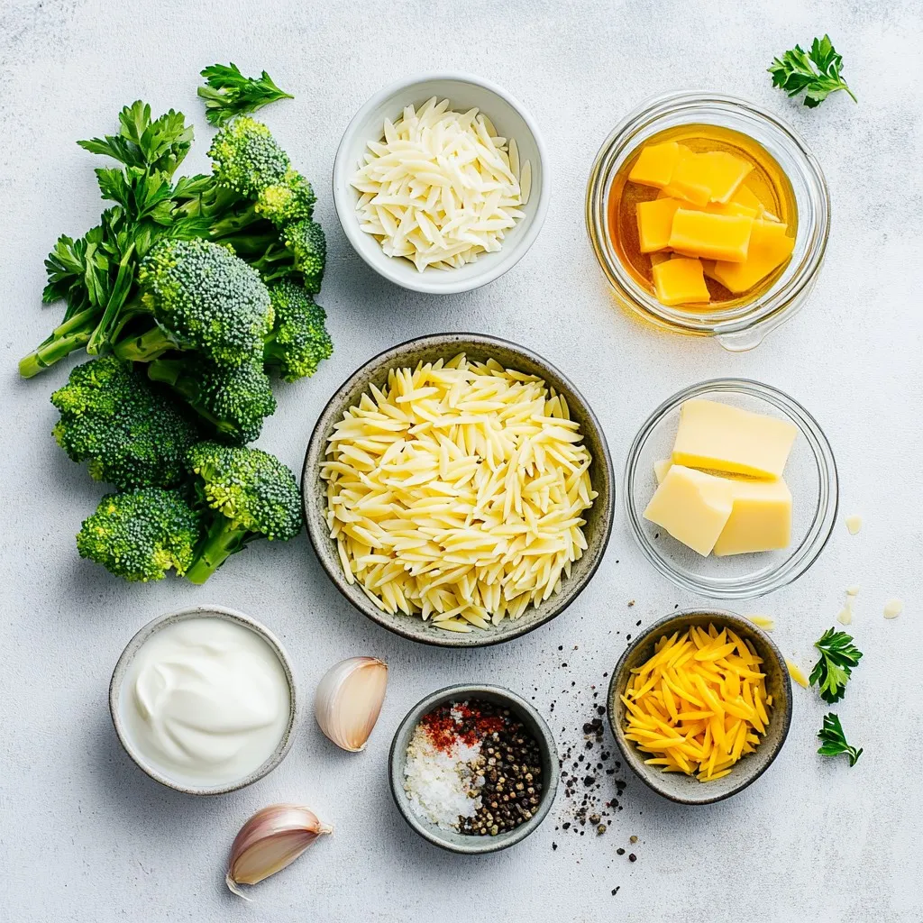 Um cremiges Brokkoli-Cheddar-Orzo zuzubereiten, brauchen Sie einige einfache Zutaten. Diese Zutaten sind leicht zu finden und machen Ihr Gericht lecker. Hier ist die Liste der Zutaten: