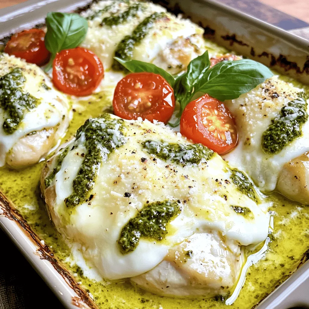 Die Hauptzutaten sind einfach. Hähnchenbrustfilets sind zart und nehmen Aromen gut auf. Die Schlagsahne macht den Auflauf cremig. Basilikum-Pesto bringt einen frischen Geschmack. Kirschtomaten fügen süße und saftige Noten hinzu. Mozzarella und Parmesan sorgen für eine leckere Käsekruste.