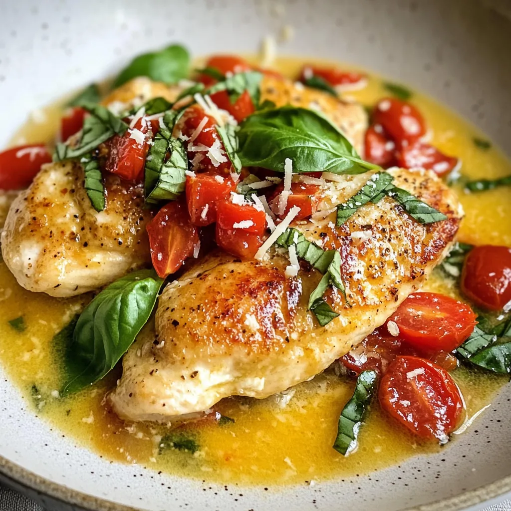 Für dieses Gericht benötigst du einige einfache, frische Zutaten. Hier sind sie: - 4 Hähnchenbrustfilets, ohne Haut und Knochen - 2 Esslöffel Olivenöl - 1 Teelöffel Knoblauchpulver - Salz und Pfeffer nach Geschmack - 1 Dose (400 g) gewürfelte Tomaten, mit Saft - 1 Tasse Schlagsahne - 1 Tasse frische Basilikumblätter, gehackt (plus zusätzlich für die Garnitur) - 1 Teelöffel getrocknete italienische Gewürze - ½ Tasse geriebener Parmesan - ½ Teelöffel rote Chiliflocken (optional für etwas Schärfe) Diese Zutaten sind wichtig für den vollen Geschmack. Die richtigen Gewürze machen einen großen Unterschied. Knoblauchpulver bringt einen kräftigen Geschmack. Salz und Pfeffer sind die Basis für jedes Gericht. Die italienischen Gewürze fügen eine besondere Note hinzu. Diese Mischung aus Oregano und Thymian passt gut zur Tomatensoße. Die roten Chiliflocken geben dir die Möglichkeit, das Gericht etwas schärfer zu machen. Du kannst sie weglassen, wenn du es milder magst. Frische Zutaten sind der Schlüssel zu einem köstlichen Gericht. Wähle Hähnchenbrustfilets, die fest und rosa sind. Achte darauf, dass sie keinen unangenehmen Geruch haben. Für die Tomaten solltest du auf Dosen mit ganzen oder gewürfelten Tomaten achten. Sie sollten in ihrem eigenen Saft sein. Frisches Basilikum ist am besten. Die Blätter sollten grün und glänzend sein. Wenn du diese Tipps befolgst, gelingt dir ein wunderbares Gericht. {{ingredient_image_2}} Zuerst nimm die Hähnchenbrustfilets und lege sie auf ein Schneidebrett. Der nächste Schritt ist einfach: würze sie mit Salz, Pfeffer und Knoblauchpulver. Du kannst die Würze gleichmäßig auf beiden Seiten verteilen. Das gibt dem Hähnchen Geschmack und Aroma. Erhitze dann das Olivenöl in einer großen Pfanne bei mittlerer bis hoher Hitze. Wenn das Öl heiß ist, lege die Hähnchenbrustfilets vorsichtig in die Pfanne. Brate sie für etwa 6-7 Minuten pro Seite. Achte darauf, dass die Außenseite goldbraun wird. Wenn sie fertig sind, nimm die Filets aus der Pfanne und lege sie beiseite. In der gleichen Pfanne, wo du das Hähnchen gebraten hast, gib jetzt die gewürfelten Tomaten hinzu. Vergiss nicht, auch den Saft hinzuzufügen! Kratz mit einem Holzlöffel die Reste vom Boden der Pfanne ab. Diese Reste geben der Sauce mehr Geschmack. Lass die Tomaten für 2-3 Minuten köcheln. Senk dann die Hitze auf mittel-niedrig. Jetzt kommt die Schlagsahne dazu. Rühre den gehackten Basilikum und die italienischen Gewürze ein. Wenn du magst, füge auch rote Chiliflocken für etwas Schärfe hinzu. Mische alles gut, bis sich die Zutaten verbinden. Nun ist es Zeit für den Käse! Füge langsam den geriebenen Parmesan hinzu und rühre weiter. Der Käse wird schmelzen und die Sauce wird cremig. Lege die Hähnchenbrustfilets zurück in die Pfanne. Löffle die Sauce über das Hähnchen. Lass alles für 3-5 Minuten köcheln. So nimmt das Hähnchen die köstlichen Aromen auf. Nimm die Pfanne dann vom Herd und lass das Gericht kurz ruhen. Vor dem Servieren, garniere mit frischem Basilikum und einer Prise Parmesan für den letzten Schliff. Um saftige Hähnchenbrust zu machen, nutze frische Filets. Würze sie gut mit Knoblauchpulver, Salz und Pfeffer. Brate sie in heißem Olivenöl. Achte darauf, sie nicht zu lange zu garen, damit sie zart bleiben. Ein goldbrauner Rand zeigt, dass sie perfekt sind. Die Kerntemperatur sollte 75 Grad Celsius erreichen. So wird das Hähnchen köstlich und saftig. Die Soße ist der Star des Gerichts. Du kannst sie leicht anpassen. Wenn du es schärfer magst, füge mehr rote Chiliflocken hinzu. Für eine mildere Variante, lasse sie einfach weg. Du kannst auch frische Kräuter wie Oregano oder Thymian verwenden. Füge etwas Zitronensaft für frische Aromen hinzu. Experimentiere mit den Zutaten, um deinen perfekten Geschmack zu finden. Ein häufiger Fehler ist, das Hähnchen zu lange zu braten. Das macht es trocken. Achte darauf, die Hitze nicht zu hoch zu stellen. Das kann die Soße anbrennen lassen. Ein weiterer Fehler ist, die Soße nicht lange genug zu köcheln. Lass die Aromen gut miteinander verschmelzen. So wird das Gericht noch köstlicher. Diese Tipps helfen dir, das beste cremige Tomaten-Basilikum-Hähnchen zu kochen. Pro Tipps Hähnchen richtig braten: Achte darauf, dass das Öl heiß genug ist, bevor du das Hähnchen in die Pfanne gibst. So erhältst du eine schöne, goldbraune Kruste. Frische Zutaten nutzen: Verwende frische Basilikumblätter anstelle von getrocknetem Basilikum für ein intensiveres Aroma in der Soße. Würze nach Geschmack: Passe die Menge der roten Chiliflocken an, um die Schärfe nach deinem persönlichen Geschmack zu regulieren. Soße eindicken: Wenn die Soße nicht dick genug ist, lasse sie einfach noch ein paar Minuten länger köcheln, damit sie die gewünschte Konsistenz erreicht. {{image_4}} Wenn du Abwechslung suchst, probiere andere Fleischsorten. Du kannst Putenbrust oder Hähnchenschenkel verwenden. Diese Optionen bringen unterschiedliche Geschmäcker. Putenbrust ist etwas magerer, während Hähnchenschenkel saftiger sind. Beide passen gut zur cremigen Tomatensoße. Für eine vegane Version nutze Tofu oder Kichererbsen. Tofu nimmt die Soßenaromen gut auf. Kichererbsen sind proteinreich und geben einen tollen Biss. Verwende Kokosnusscreme anstelle von Schlagsahne. So erhält dein Gericht eine cremige Textur ohne tierische Produkte. Um das Gericht glutenfrei zu machen, achte darauf, dass alle Zutaten glutenfrei sind. Die gewürfelten Tomaten sind meist sicher, aber überprüfe die Etiketten. Bei der Verwendung von Parmesan kannst du eine pflanzliche Alternativen wählen, um die diätetischen Bedürfnisse zu erfüllen. So bleibt der Genuss ohne Sorgen. Um Reste von cremigem Tomaten-Basilikum-Hähnchen gut zu lagern, lass das Gericht zuerst abkühlen. Verwende dann einen luftdichten Behälter. So bleibt das Aroma frisch. Du kannst auch Portionsbehälter nutzen, um die Reste einfacher zu teilen. Das H