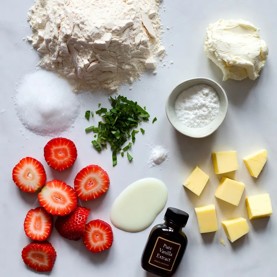 Hauptzutaten für Erdbeer-Basilikum-Shortcake