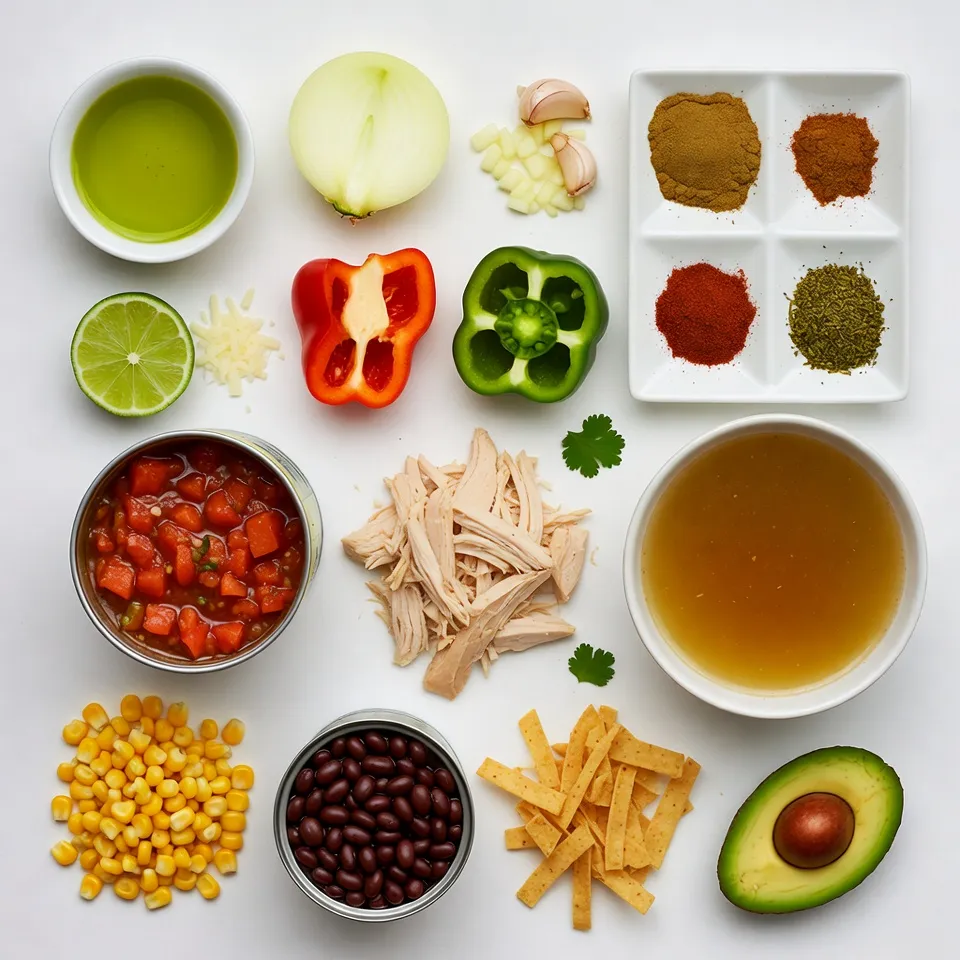 Die Zutaten für die herzhafte Southwest Chicken Tortilla Soup sind einfach zu finden. Sie brauchen: