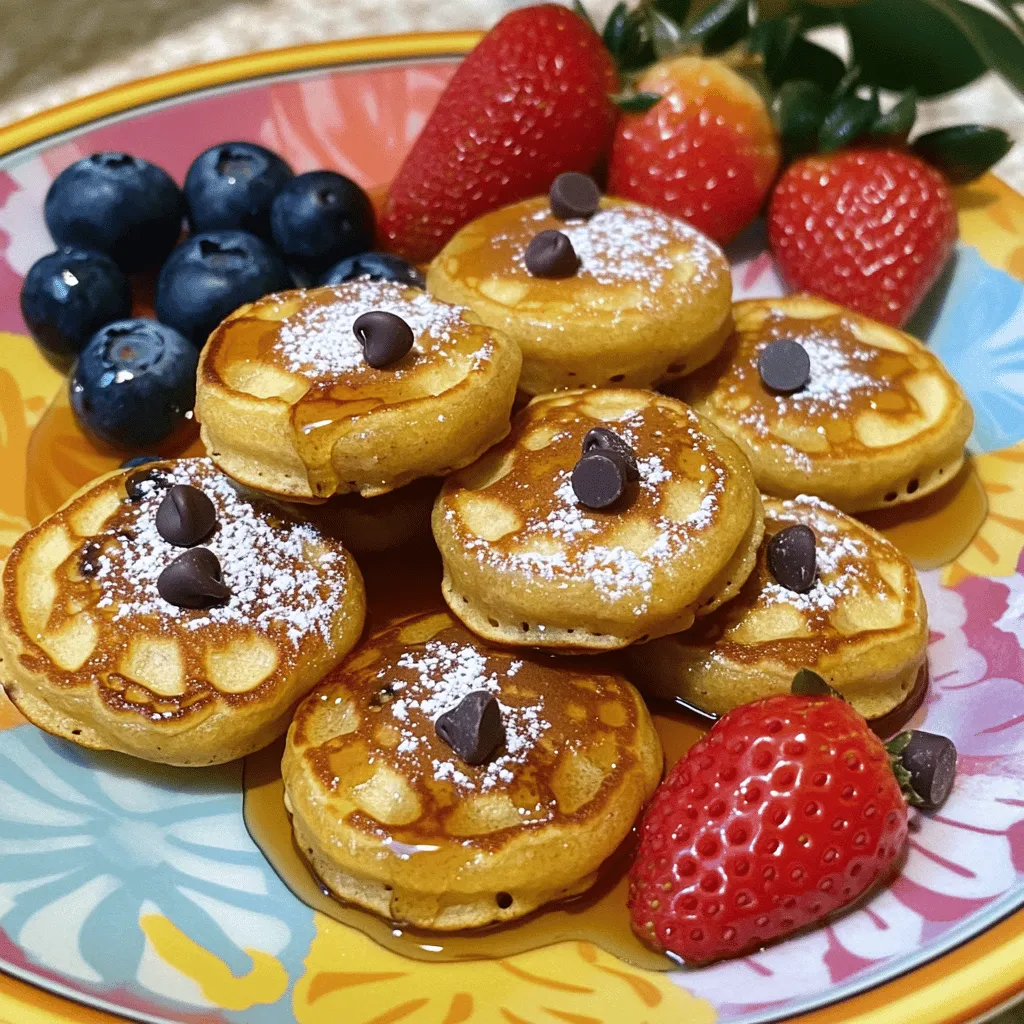 Lass die Bites einige Minuten in der Form abkühlen. Übertrage sie dann auf ein Kuchengitter, um vollständig abzukühlen. Serviere die Pfannkuchen Bites auf einem bunten Teller. Beträufle sie mit Ahornsirup oder bestäube sie mit Puderzucker. Frische Früchte wie Erdbeeren oder Heidelbeeren machen das Gericht lebendig und lecker.