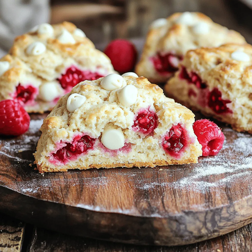 Die Himbeeren bringen eine fruchtige Säure in die Scones. Sie machen jeden Biss frisch und lebhaft. Die weiße Schokolade fügt eine süße, cremige Note hinzu. Sie schmilzt schön, wenn die Scones warm sind. Butter sorgt für einen reichhaltigen Geschmack und eine zarte Krume. Schlagsahne macht den Teig weich und feucht. Diese Zutaten sind wichtig, um den perfekten Geschmack zu erzielen.