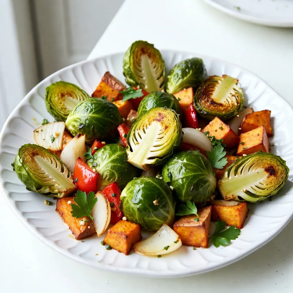Dieses Röstgemüse ist nicht nur lecker, sondern auch gesund. Es bietet viele Nährstoffe. Rosenkohl ist reich an Vitamin C und K. Die Süßkartoffel bringt Ballaststoffe und Beta-Carotin. Paprika fügt Antioxidantien hinzu. Olivenöl enthält gesunde Fette, die gut für das Herz sind.