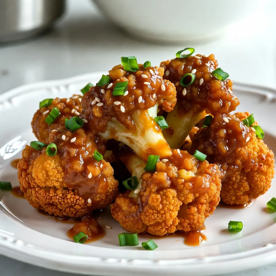 Knusprige Blumenkohl-Flügel in einer süßen und würzigen Honig-Knoblauch-Sauce.