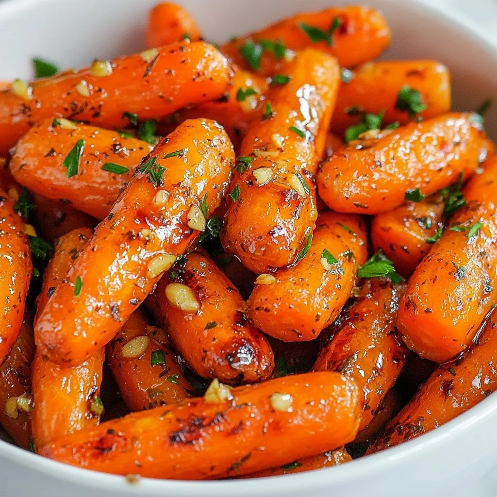 Eine köstliche Beilage aus gerösteten Karotten mit einer süßen und salzigen Honig-Knoblauch-Marinade.