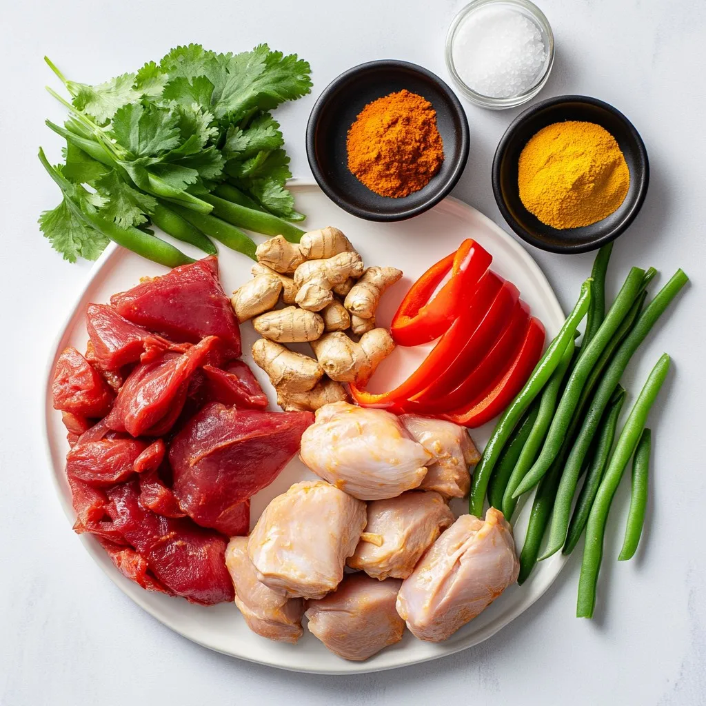 Die Hauptzutaten für dieses Gericht sind einfach und lecker. Hähnchenschenkel sind ideal, da sie saftig und zart sind. Kokosmilch bringt eine cremige Textur und einen milden Geschmack. Rote Currypaste gibt dem Gericht eine würzige Note. Ingwer und Knoblauch fügen frische Aromen hinzu. Die Sojasauce und der braune Zucker runden den Geschmack ab.