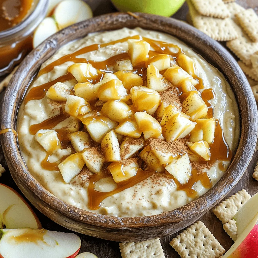 Um den Dip perfekt zu machen, achte auf die Zutaten. Nutze frische Äpfel. Granny Smith oder Honeycrisp sind ideal. Sie geben einen tollen Geschmack. Schlage den Frischkäse, bis er cremig ist. So wird der Dip schön glatt. Mische die Zutaten gut. Achte darauf, die Äpfel nicht zu zerdrücken. Das sorgt für einen tollen Biss. Füge die Karamellsauce vorsichtig hinzu. So bleibt der Dip schön cremig und süß.