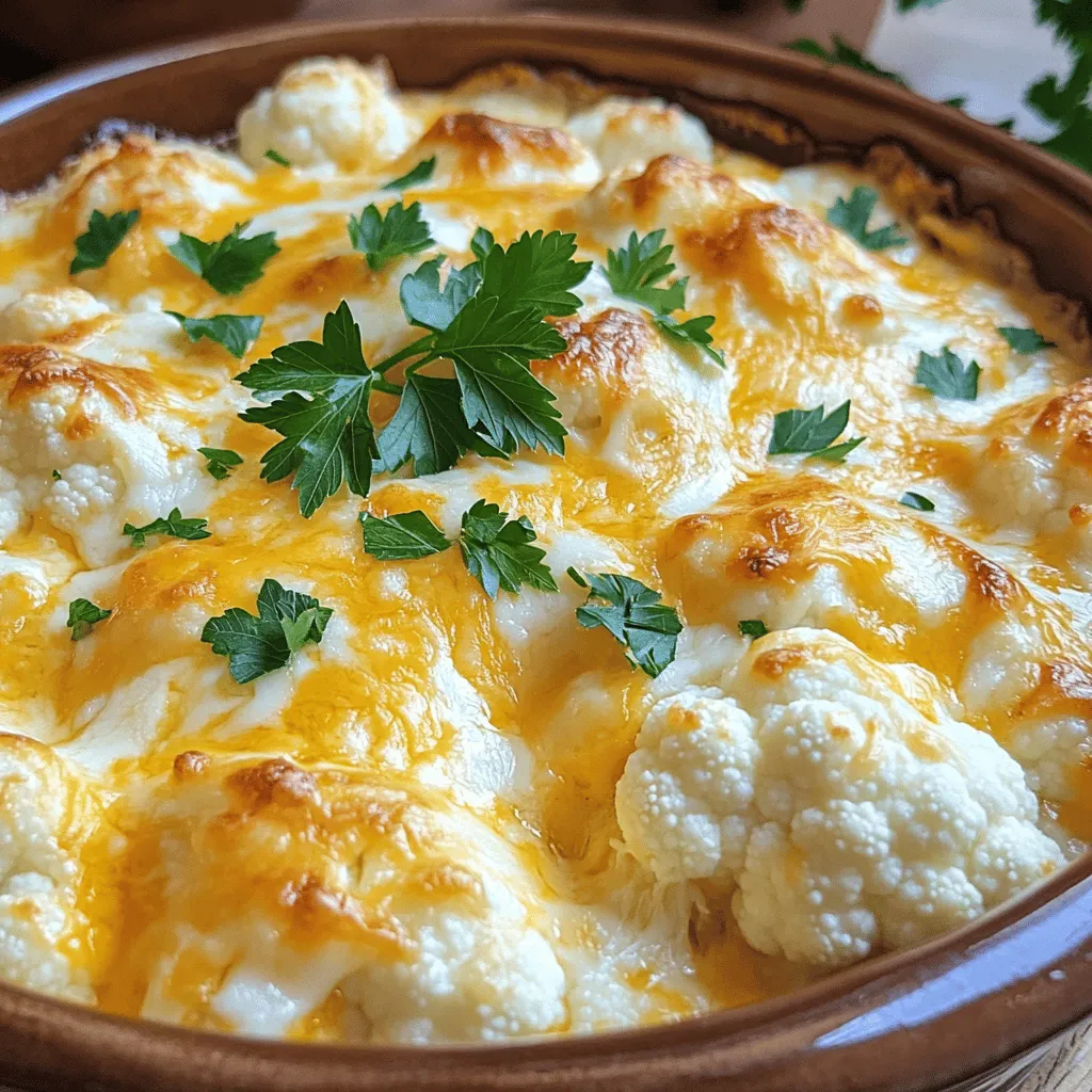 ![Für diesen Käse Blumenkohl Auflauf brauchen Sie einige frische und leckere Zutaten. Diese Zutaten bringen den besten Geschmack in Ihr Gericht: - 1 große Blumenkohlkopf, in Röschen zerteilt - 240 ml geriebener Cheddar-Käse - 240 ml Mozzarella-Käse, gerieben - 240 ml Frischkäse, weich - 240 ml Milch - 2 Knoblauchzehen, fein gehackt - 1 Teelöffel Zwiebelpulver - 1 Teelöffel Knoblauchpulver - Salz und Pfeffer nach Geschmack - 120 ml geriebener Parmesan-Käse - 60 ml frische Petersilie, gehackt (zum Garnieren) Die genauen Mengen dieser Zutaten sind wichtig für den besten Geschmack. Hier sind die Messungen: - Blumenkohl: 1 großer Kopf - Käse: 240 ml von Cheddar und 240 ml von Mozzarella - Frischkäse: 240 ml - Milch: 240 ml - Knoblauch: 2 Zehen - Gewürze: je 1 Teelöffel Zwiebelpulver und Knoblauchpulver - Parmesan: 120 ml - Petersilie: 60 ml zum Garnieren Um das beste Ergebnis zu erzielen, empfehle ich, frische Zutaten zu verwenden. Achten Sie darauf, den Blumenkohl frisch zu kaufen. Der Käse sollte von guter Qualität sein. Ich benutze oft Käse aus der Kühltheke, da dieser einen besseren Geschmack hat. Für den Frischkäse wählen Sie einen cremigen Typ. Diese Faktoren machen Ihren Käse Blumenkohl Auflauf besonders lecker. Besuchen Sie auch die [Full Recipe] für mehr Details und Tipps. Heize deinen Ofen auf 190°C vor. Nimm einen großen Topf und fülle ihn mit Wasser. Füge eine Prise Salz hinzu und bringe das Wasser zum Kochen. Wenn das Wasser kocht, gib die Blumenkohlröschen hinein. Blanchiere sie für etwa 5 Minuten. Der Blumenkohl sollte leicht zart, aber noch knackig sein. Gieße das Wasser ab und stelle den Blumenkohl beiseite. In einer großen Rührschüssel mische den weichen Frischkäse mit 240 ml Milch. Füge die fein gehackten Knoblauchzehen, 1 Teelöffel Zwiebelpulver und 1 Teelöffel Knoblauchpulver hinzu. Würze die Mischung mit Salz und Pfeffer nach Geschmack. Rühre alles mit einem Schneebesen gut um, bis die Mischung glatt ist. Das ist der Grundgeschmack für deinen Auflauf. Jetzt kommt der spannende Teil! Füge die blanchierten Blumenkohlröschen zur Käsemischung hinzu. Mische alles vorsichtig, damit der Blumenkohl gut bedeckt ist. Achte darauf, dass jedes Stück Blumenkohl die leckere Käsemischung aufnimmt. Wenn du magst, hebe etwas von der Käsemischung auf, um später den Auflauf zu garnieren. Gib die Blumenkohl-Käsemischung in eine gefettete Auflaufform. Verteile sie gleichmäßig. Streue den zurückbehaltenen Cheddar- und Mozzarella-Käse darauf. Vervollständige den Auflauf mit geriebenem Parmesan. Backe den Auflauf im vorgeheizten Ofen für 25-30 Minuten. Er ist fertig, wenn die Oberseite goldbraun und sprudelnd ist. Lass ihn nach dem Backen etwas abkühlen. Garniere ihn vor dem Servieren mit frischer Petersilie. Du kannst das Rezept in der [Full Recipe] nachlesen. Um den besten Käsegeschmack zu bekommen, mische verschiedene Käsesorten. Ich nutze gerne Cheddar, Mozzarella und Parmesan. Cheddar gibt dem Auflauf einen kräftigen Geschmack. Mozzarella sorgt für die cremige Konsistenz. Parmesan bringt eine salzige Note. Wenn du einen starken Käsegeschmack willst, füge mehr Cheddar hinzu. Verwende frische Käsesorten, die gut schmelzen. So erhältst du die perfekte Kombination. Ein häufiger Fehler ist, den Blumenkohl zu lange zu blanchieren. Das Gemüse sollte noch etwas knackig sein. Wenn du ihn zu weich machst, wird er matschig im Auflauf. Achte auch darauf, die Käsemischung gut zu vermengen. Wenn du nicht genug rührst, kleben die Käseklumpen zusammen. Überprüfe die Gewürze! Zu wenig Salz kann den Geschmack des gesamten Auflaufs schwächen. Die ideale Konsistenz ist cremig, aber nicht flüssig. Die Käsemischung sollte dick genug sein, damit der Blumenkohl sie gut umhüllt. Wenn dein Auflauf zu trocken aussieht, füge etwas mehr Milch oder Frischkäse hinzu. Nach dem Backen sollte die Oberfläche goldbraun sein. Lass den Auflauf danach kurz ruhen. So kann er sich setzen und die Konsistenz bleibt perfekt. Für das vollständige Rezept besuche den Abschnitt [Full Recipe]. {{image_4}} Wenn du eine vegetarische Option suchst, ist der Käse Blumenkohl Auflauf perfekt. Blumenkohl ist schon von Natur aus pflanzlich. Du kannst auch anderes Gemüse hinzufügen, wie Brokkoli oder Spinat. Das gibt mehr Farbe und Geschmack. Diese Variationen machen den Auflauf noch gesünder und leckerer. Um den Geschmack zu verstärken, füge Räuchersalz oder Cayennepfeffer hinzu. Auch frische Kräuter wie Thymian oder Oregano machen viel aus. Du kannst auch gebratene Zwiebeln oder Paprika für mehr Textur einmischen. Diese Zutaten bringen neue Dimensionen in dein Gericht. Experimentiere mit verschiedenen Käsesorten wie Gouda oder Feta für einen anderen Kick. Für glutenfreie Varianten ist dieser Auflauf schon fast ideal. Die Hauptzutaten enthalten kein Gluten. Stelle sicher, dass die verwendeten Käsesorten auch glutenfrei sind. Du kannst die Milch durch Mandelmilch oder Sojamilch ersetzen, wenn du laktosefrei sein möchtest. So bleibt der Auflauf für viele Menschen genießbar. Um den Käse Blumenkohl Auflauf richtig zu lagern, lassen Sie ihn zuerst abkühlen. Decken Sie die Auflaufform mit Alufolie oder Plastikfolie ab. Alternativ können Sie den Auflauf in einen luftdichten Behälter umfüllen. Lagern Sie ihn im Kühlschrank. So bleibt er frisch und lecker. Um den Auflauf wieder aufzuwärmen, heizen Sie den Ofen auf 180°C vor. Nehmen Sie den Auflauf aus dem Kühlschrank. Bedecken Sie ihn leicht mit Alufolie, um ein Austrocknen zu verhindern. Backen Sie ihn für etwa 20 Minuten oder bis er heiß ist. Sie können auch die Mikrowelle verwenden, aber die Ofenmethode sorgt für eine bessere Konsistenz. Im Kühlschrank hält der Auflauf etwa 3 bis 4 Tage. Wenn Sie ihn länger aufbewahren möchten, können Sie ihn einfrieren. Dazu teilen Sie den Auflauf in Portionen auf. Wickeln Sie jede Portion gut ein und lagern Sie sie im Gefrierfach. So bleibt er bis zu 3 