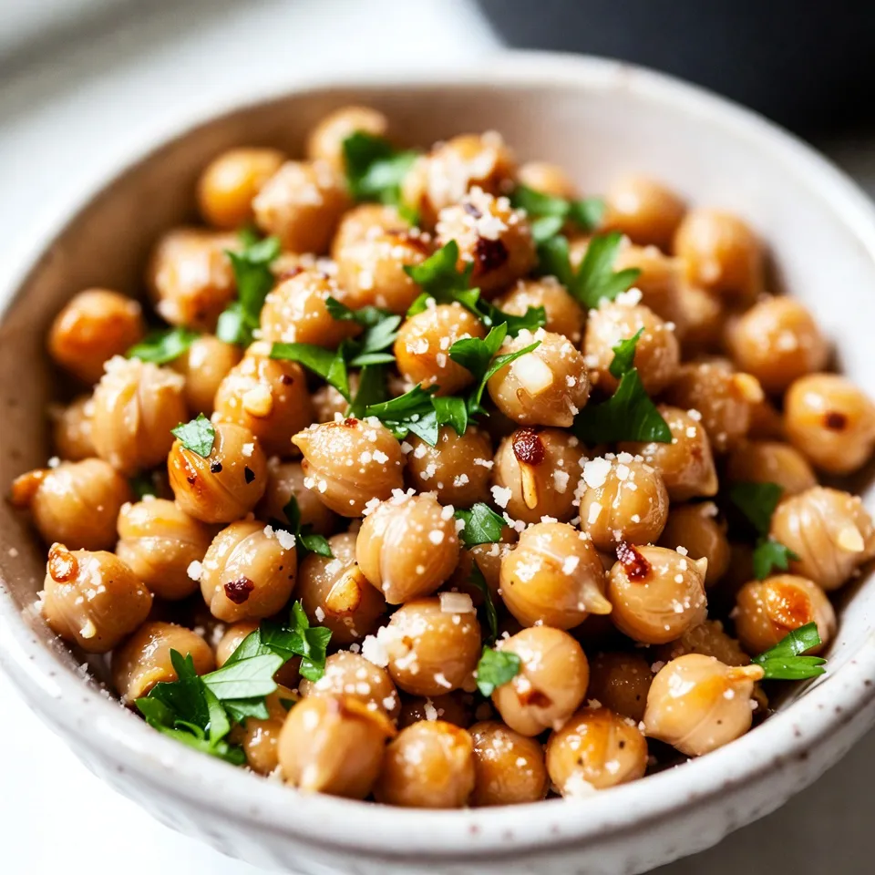 Ein köstlicher Snack aus gerösteten Kichererbsen mit Knoblauch und Parmesan.