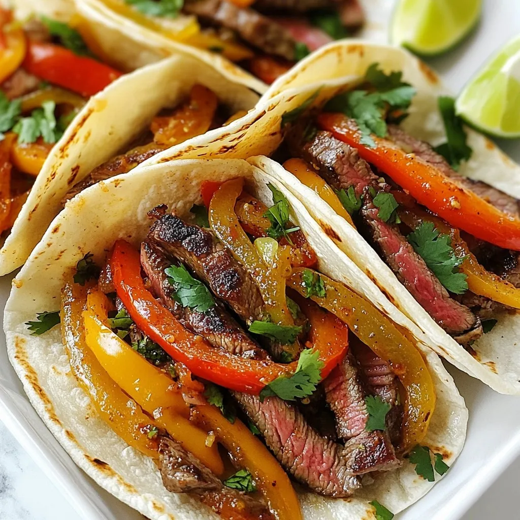 • Servieren: Eine großzügige Portion der Steak-Gemüse-Mischung auf die warmen Tortillas löffeln. Mit frischem Koriander garnieren und mit Limettenvierteln servieren, die über die Fajitas gedrückt werden können.