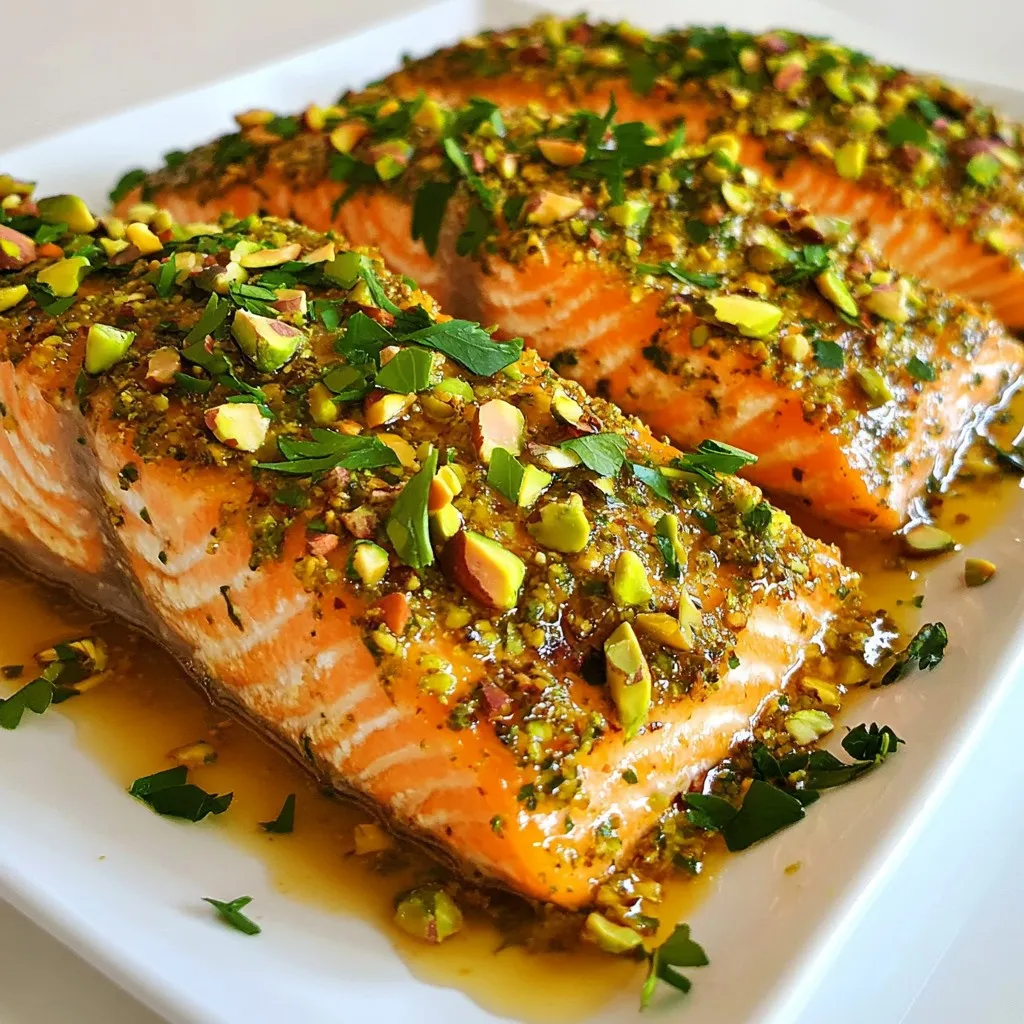 Ein köstliches Lachsgericht mit einer knusprigen Pistazienkruste.
