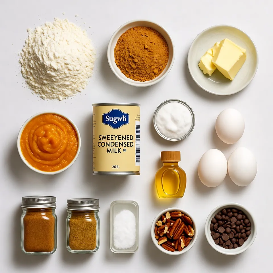 Hauptzutaten für Kürbis-Pekan-Kuchen-Riegel