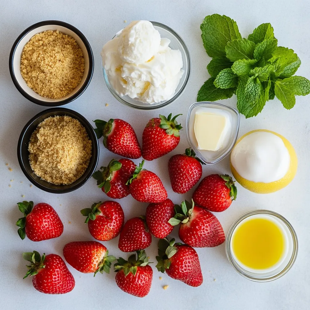 Ein erfrischendes Dessert mit frischen Erdbeeren und Vanilleeis auf einem knusprigen Graham-Cracker-Boden.
