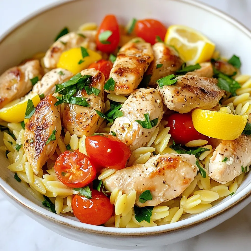 Ein köstliches und einfaches Gericht mit Hähnchen, Orzo-Nudeln und frischen Kräutern.
