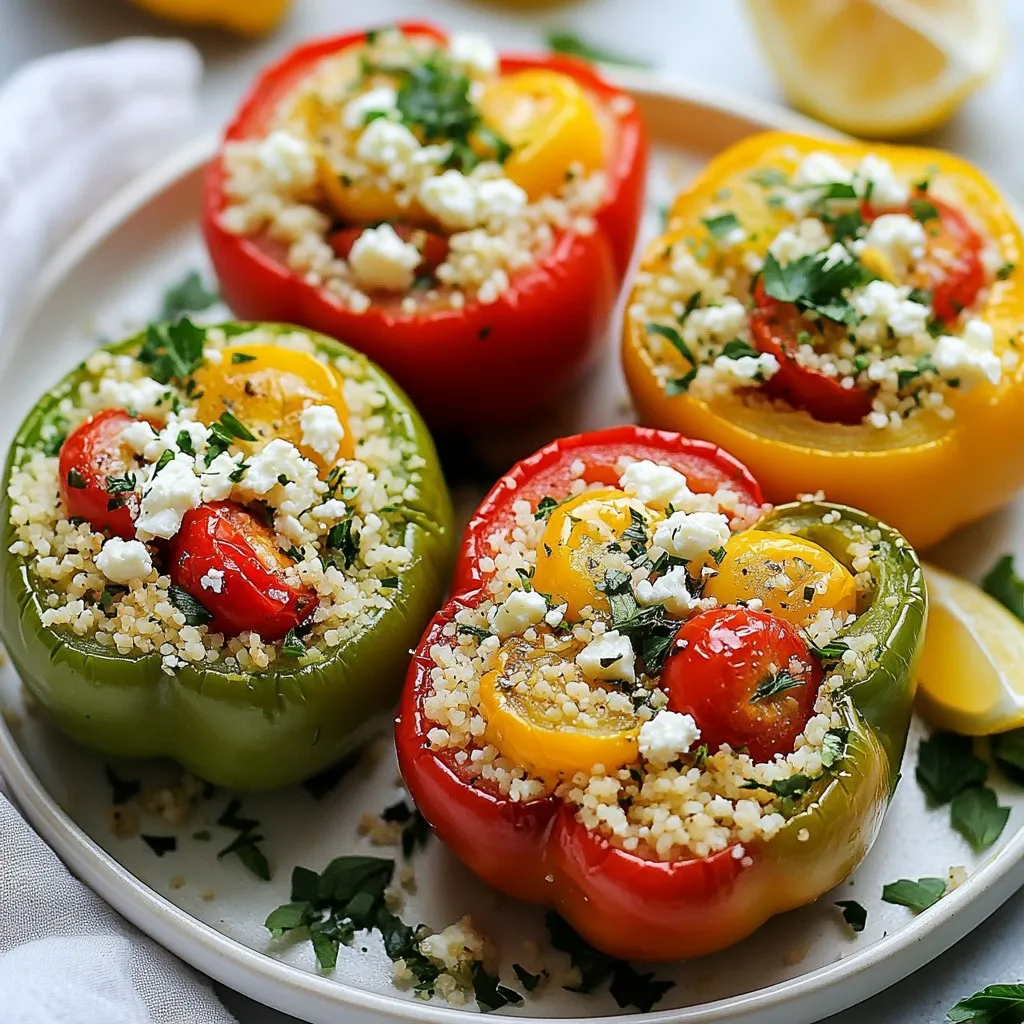 Entdecken Sie mit mir den tollen Geschmack dieser Lemon Herb Couscous Stuffed Peppers! Dieses Gericht ist nicht nur einfach zuzubereiten, sondern auch ein wahrer Genuss. Die Kombination aus frischem Gemüse, Kräutern und dem Zitronen-Aroma lässt Ihre Geschmacksknospen aufblühen. In diesem Rezept zeige ich Ihnen, wie Sie mit wenigen Zutaten ein gesundes und schmackhaftes Gericht zaubern. Bereit für diese köstliche Reise? Lassen Sie uns starten!