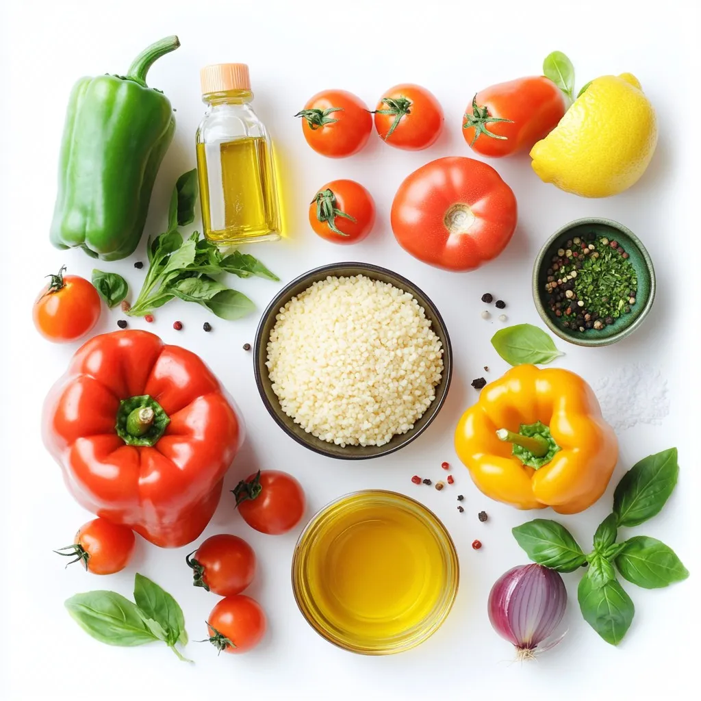 Diese Zutaten sind einfach zu finden. Sie bringen frische Aromen in dein Gericht. Die Paprika dienen als essbare Schalen. Couscous ist leicht und schnell zu kochen. Die Kräuter geben Geschmack und Farbe. Frische Zwiebel und Knoblauch machen alles noch besser.