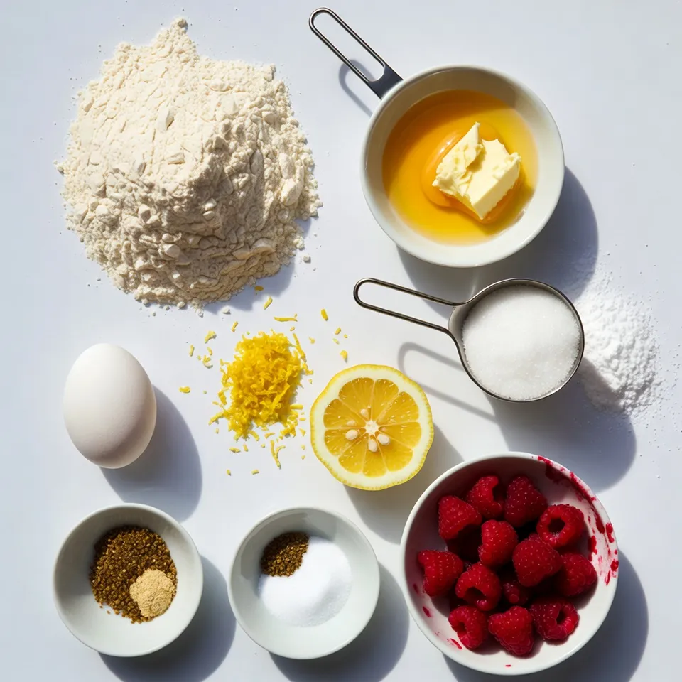 Diese Zutaten machen die Kekse frisch und lecker. Die Kombination aus Zitrone und Himbeeren bringt einen tollen Geschmack.