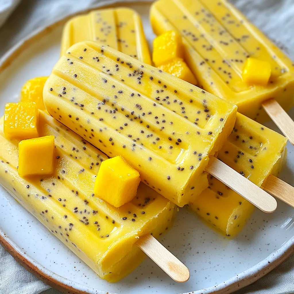 Genießen Sie diese erfrischenden Mango Kokosnuss Chia Eis als gesunden Snack oder Dessert!