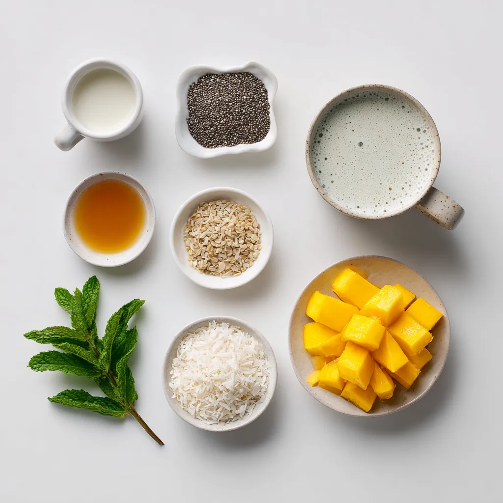 Hauptzutaten für das Mango Kokos Chia Pudding