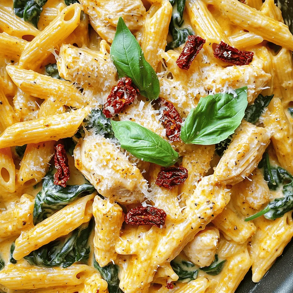 Die Penne-Nudeln sind die Basis dieses Gerichts. Sie nehmen die Sauce gut auf. Ich wähle frische Hähnchenbrustfilets. Sie sind zart und lecker. Die sonnengetrockneten Tomaten bringen einen tollen Geschmack. Sie verleihen dem Gericht eine fruchtige Note.