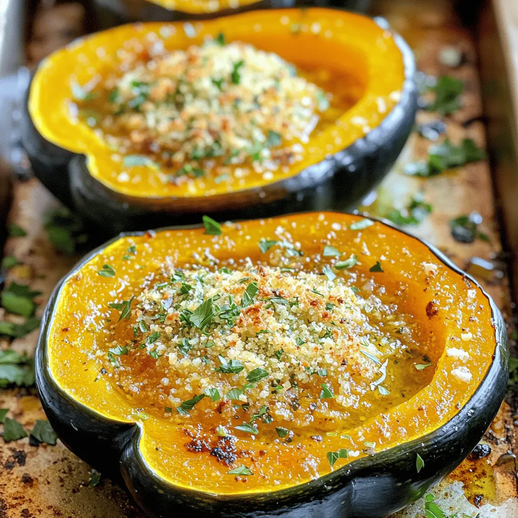 ![- 2 mittelgroße Eichelkürbisse - 3 Esslöffel Olivenöl - 1/3 Tasse frisch geriebener Parmesan Die Hauptzutaten sind einfach zu finden. Der Eichelkürbis hat eine süße, nussige Note. Er passt gut zu den würzigen Kräutern und dem salzigen Parmesan. Das Olivenöl macht alles schön knusprig. - 2 Teelöffel getrockneter Thymian - 2 Teelöffel getrockneter Rosmarin - 1 Teelöffel Knoblauchpulver Die Gewürze bringen viel Geschmack. Thymian und Rosmarin sind perfekt für den Kürbis. Sie geben ihm ein warmes Aroma. Knoblauchpulver fügt eine weitere Geschmacksnote hinzu. Diese Mischung ist einfach und lecker. - Salz und Pfeffer nach Geschmack - Frische Petersilie zum Garnieren Salz und Pfeffer sind wichtig für den Geschmack. Sie heben die Aromen der anderen Zutaten hervor. Frische Petersilie macht das Gericht bunt und frisch. Sie ist das i-Tüpfelchen auf dem Kürbis. Für die vollständige Zubereitung schauen Sie sich das [Full Recipe] an. Zuerst musst du die Eichelkürbisse halbieren. Nimm ein scharfes Messer und schneide sie vorsichtig in der Mitte durch. Entferne die Kerne mit einem Löffel. Das ist einfach und macht Spaß. Heize deinen Ofen auf 200°C (400°F) vor. So wird der Kürbis gleichmäßig gar. Nimm die halbierten Kürbisse und träufle das Olivenöl gleichmäßig über die Schnittflächen. Das hilft, das Gemüse schön knusprig zu machen. Jetzt bereitest du die Parmesan-Kräutermischung vor. In einer kleinen Schüssel vermenge den frisch geriebenen Parmesan mit Thymian, Rosmarin, Knoblauchpulver, Salz und Pfeffer. Diese Mischung gibt deinem Kürbis tollen Geschmack. Lege die Kürbisse mit der Schnittfläche nach oben auf ein Backblech. Achte darauf, dass sie nicht überlappen. Röste die Kürbisse für 30-35 Minuten im Ofen. Sie sollten zart sein und die Oberflächen goldbraun werden. Wenn du magst, kannst du sie dann mit frischer Petersilie garnieren. Das gibt einen frischen Farbklecks. Wenn du das ganze Rezept machen möchtest, schau dir die Full Recipe an. Die beste Temperatur für das Rösten ist 200°C. Dies sorgt für eine schöne Bräunung. Behalte die Kürbisse im Auge. Nach etwa 30 Minuten solltest du die Farbe prüfen. Sie sollten goldbraun sein und leicht zart. Diese Konsistenz macht das Gericht besonders lecker. Vermeide es, zu viel oder zu wenig Öl zu verwenden. Zu viel Öl macht die Kürbisse fettig. Zu wenig Öl trocknet sie aus. Achte auch auf die Gewürze. Überwürzen kann den Geschmack ruinieren. Halte die Balance mit den Kräutern und dem Parmesan. So bleibt der Geschmack frisch und lecker. Die Präsentation ist wichtig. Serviere die Kürbis-Hälften auf einer schönen Platte. Das sieht einladend aus. Füge zusätzliche Parmesanflocken hinzu. Diese Garnitur gibt dem Gericht einen tollen visuellen Eindruck. Es macht das Essen noch appetitlicher. {{image_4}} Wenn Sie nach Alternativen zu Parmesan suchen, gibt es viele Optionen. Vegane Käsealternativen sind großartig. Sie können Produkte auf Nussbasis verwenden. Diese bieten einen ähnlichen Geschmack und eine cremige Textur. Mandeln und Cashews sind beliebte Zutaten. Sie können auch Hefeflocken verwenden, um einen käsigen Geschmack zu erzielen. Das Experimentieren mit frischen Kräutern kann den Geschmack verbessern. Basilikum, Oregano oder Schnittlauch sind gute Optionen. Diese Kräuter verleihen dem Gericht eine neue Note. Sie können auch andere Gewürzkombinationen ausprobieren. Paprika oder Kreuzkümmel könnten für einen besonderen Kick sorgen. Seien Sie kreativ und finden Sie, was Ihnen am besten schmeckt. Für eine perfekte Mahlzeit passen viele Beilagen gut dazu. Ein frischer Salat oder Quinoa sind tolle Ergänzungen. Sie könnten auch gebratenes Gemüse wie Rosenkohl oder Karotten servieren. Diese Kombinationen sorgen für eine ausgewogene Ernährung. Weitere Gemüsevarianten zum Rösten sind Süßkartoffeln oder Zucchini. Sie bringen Farbe und Geschmack auf den Tisch und machen das Essen noch köstlicher. Nach dem Essen bleiben oft Reste übrig. Bewahre sie in einem luftdichten Behälter auf. So bleiben sie frisch und schmackhaft. Du solltest die Reste innerhalb von drei Tagen essen. Das hält die Aromen und die Textur gut. Wenn du die Reste aufwärmen willst, gibt es zwei Möglichkeiten: Mikrowelle oder Ofen. Die Mikrowelle ist schnell, aber kann die Textur verändern. Der Ofen bringt die Röstung zurück. Heize ihn auf 180°C vor. Lege die Kürbisstücke auf ein Backblech. Erwärme sie für etwa 10-15 Minuten, bis sie heiß sind. Wenn du mehr machen möchtest, kannst du die Röstkürbisse einfrieren. Lasse sie zuerst ganz abkühlen. Lege sie dann in einen gefrierfesten Beutel. So bleiben sie bis zu drei Monate gut. Bedenke, dass das Einfrieren die Textur verändert. Wenn du sie wieder auftauen willst, lege sie am besten über Nacht in den Kühlschrank. Das Rösten von Eichelkürbissen dauert etwa 30 bis 35 Minuten. Die ideale Temperatur ist 200°C (400°F). In diesem Zeitraum werden die Kürbisse zart und goldbraun. Achten Sie darauf, die Kürbisse nicht zu lange zu rösten, um ein Austrocknen zu vermeiden. Die beste Methode ist, die Kürbisse nach 25 Minuten zu überprüfen. Stechen Sie mit einer Gabel hinein. So sehen Sie, ob sie weich sind. Ja, Sie können auch andere Kürbisarten verwenden. Hokkaido oder Butternut-Kürbis sind gute Alternativen. Eichelkürbis hat einen süßen Geschmack und eine zarte Textur. Hokkaido ist etwas fester, hat aber auch einen süßen Geschmack. Butternut ist cremiger und eignet sich gut für Pürees. Denken Sie daran, die Röstdauer je nach Sorte anzupassen. Testen Sie die Kürbisse mit einer Gabel, um die perfekte Zartheit zu finden. Dieses Rezept kann leicht angepasst werden. Es ist für Vegetarier geeignet, da es keine tierischen Produkte außer Parmesan enthält. Um es vegan zu machen, ersetzen Sie Parmesan durch eine pflanzliche Option. Auch glutenfrei ist das Rezept, da keine glutenhaltigen Zutaten verwendet werden. Für Menschen mit Allergie