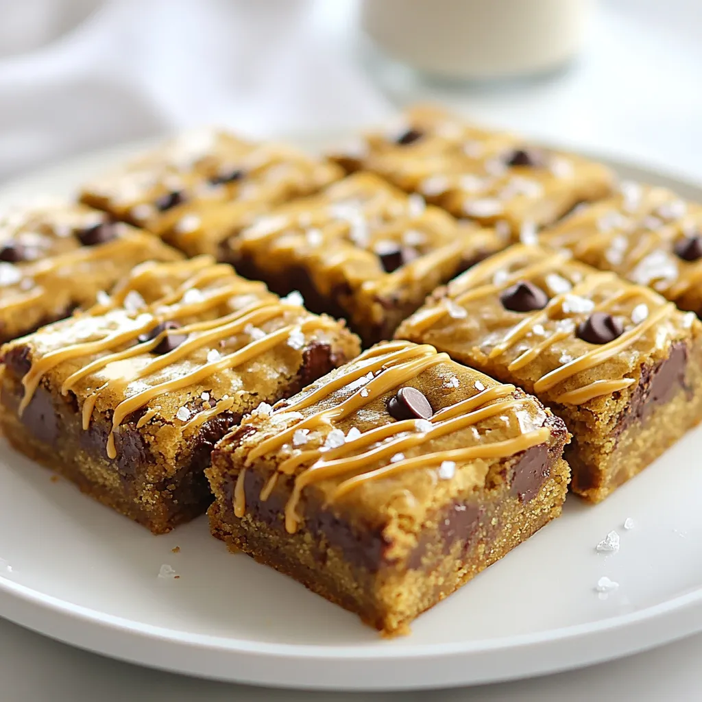 Servieren Sie die Blondies warm mit geschmolzener Erdnussbutter und Fleur de Sel.