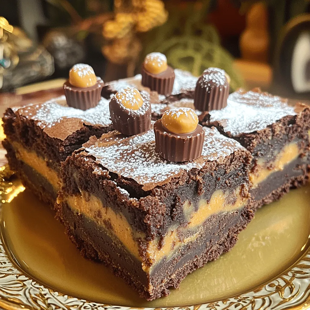- Serviertipps: Servieren Sie die Brownies auf einem dekorativen Teller, bestäuben Sie sie leicht mit Puderzucker und garnieren Sie sie mit ganzen Mini-Erdnussbutter-Tassen für einen einladenden Touch.